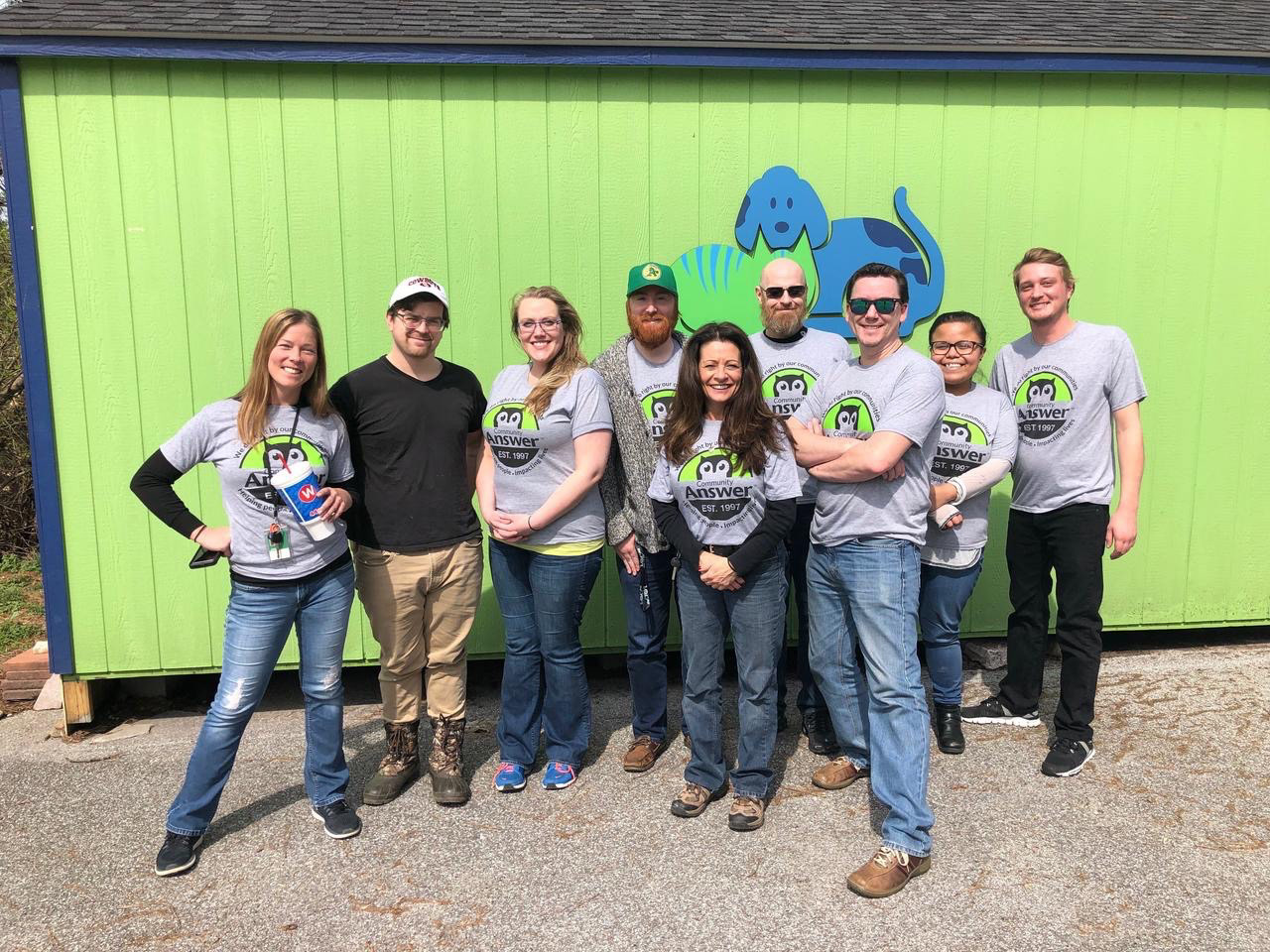 This t-shirt and logo design that was created for all internal Answer Financial employees for volunteering functions with the company. Below photographs are employees volunteering and wearing my t-shirt design.