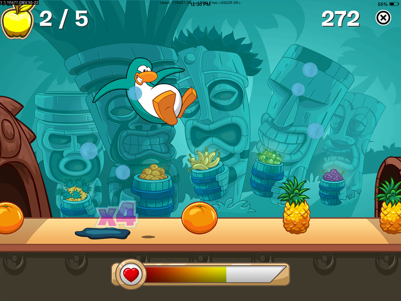 Finished in game screenshot of background for Smoothie Smash Survival game inside of Club Penguin