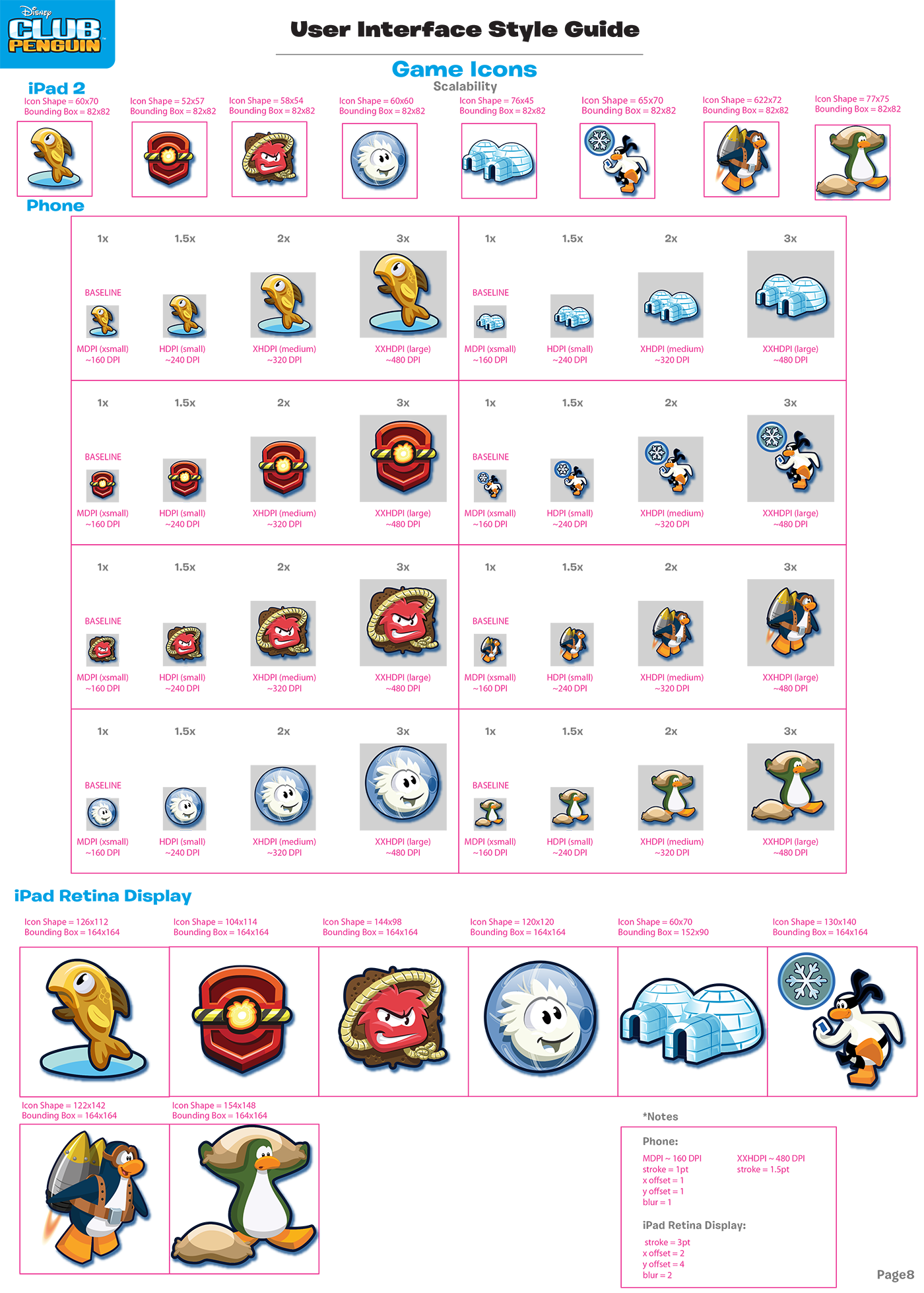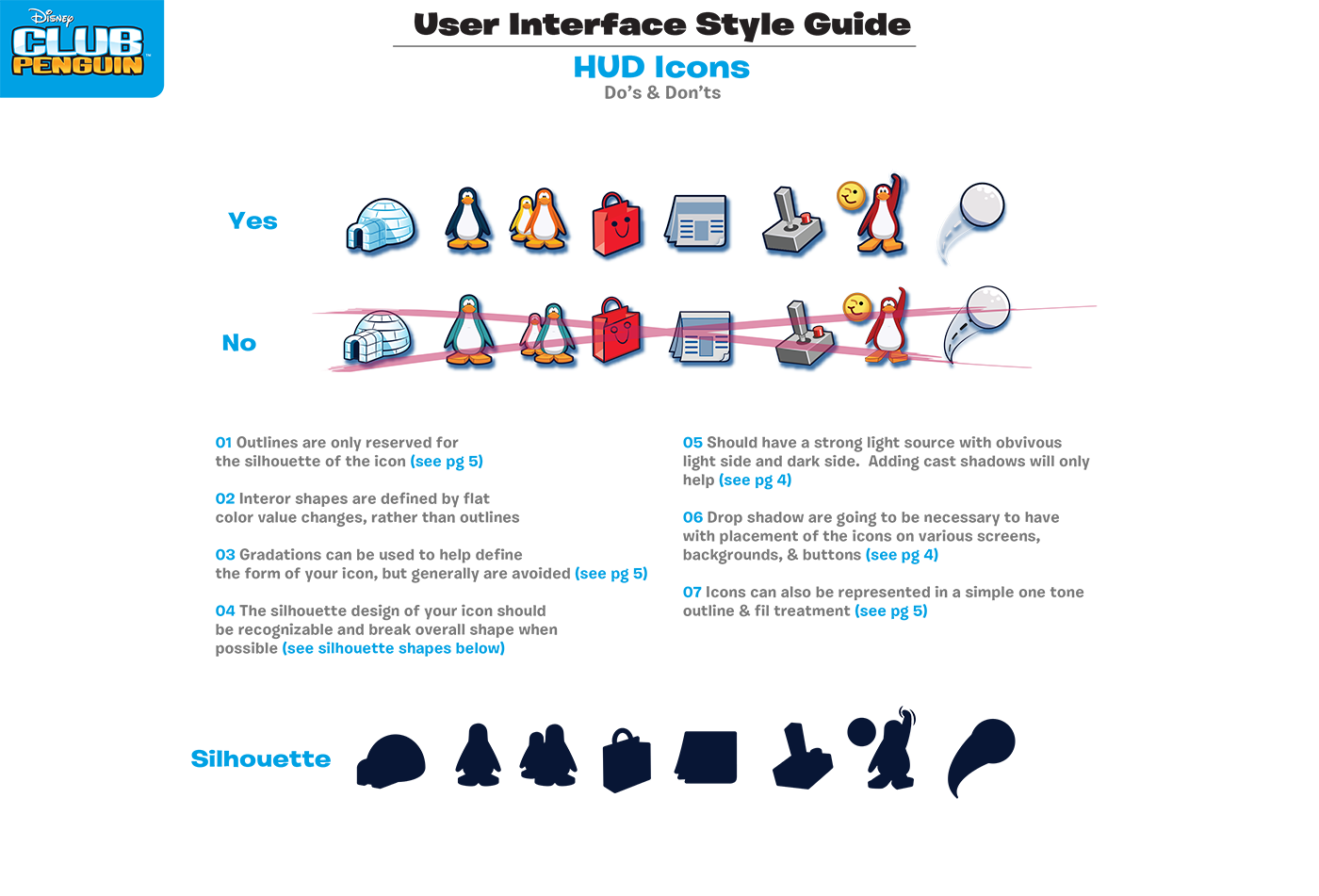 As we were converting all the old artwork created for the web over to mobile, this was my opportunity to create a brand UI guidelines for my new UI interface. Here is a do's and don't page. With my background in illustration and concept art many character designers use silhouettes to build a strong design. I was able to use this process in creating strong UI and icon designs.