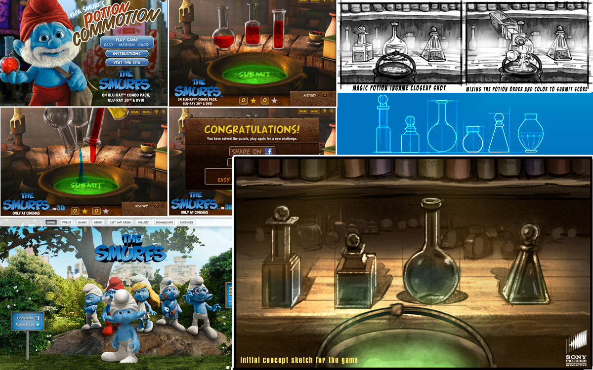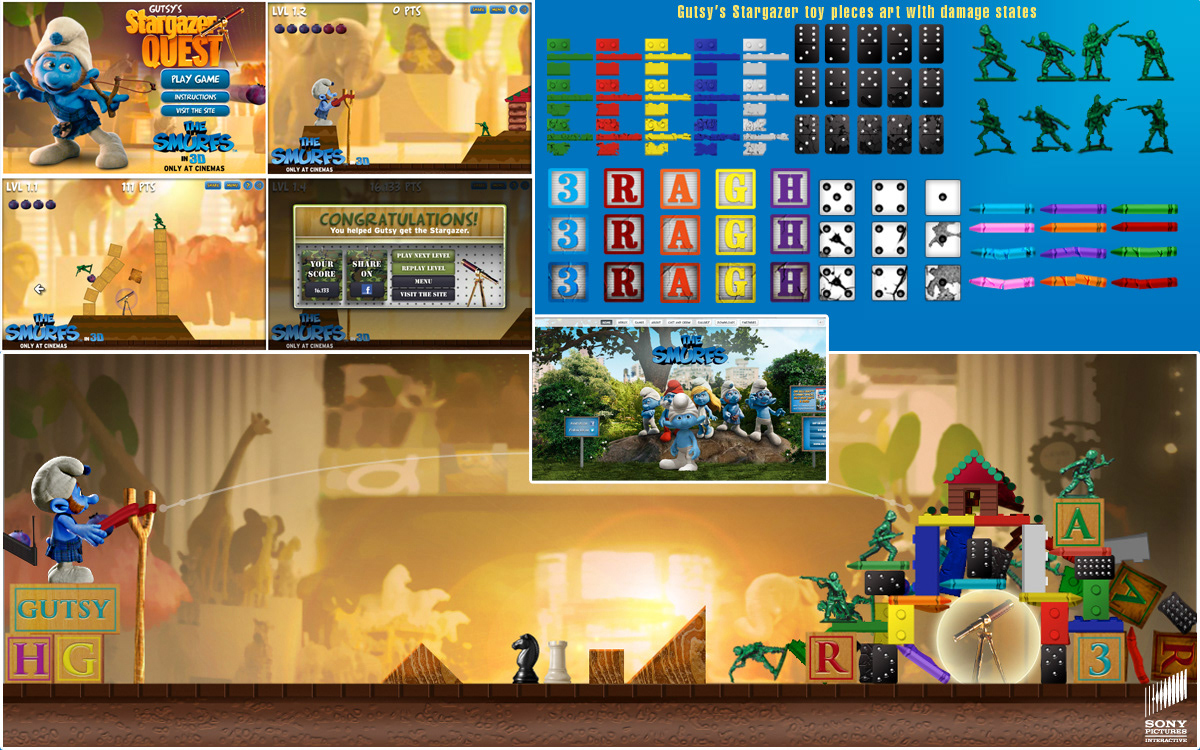 Websites and games for marketing the following films: Smurfs, Zoo Keeper, TinTin, GrownUps, and Cloudy With The Chance Of Meatballs