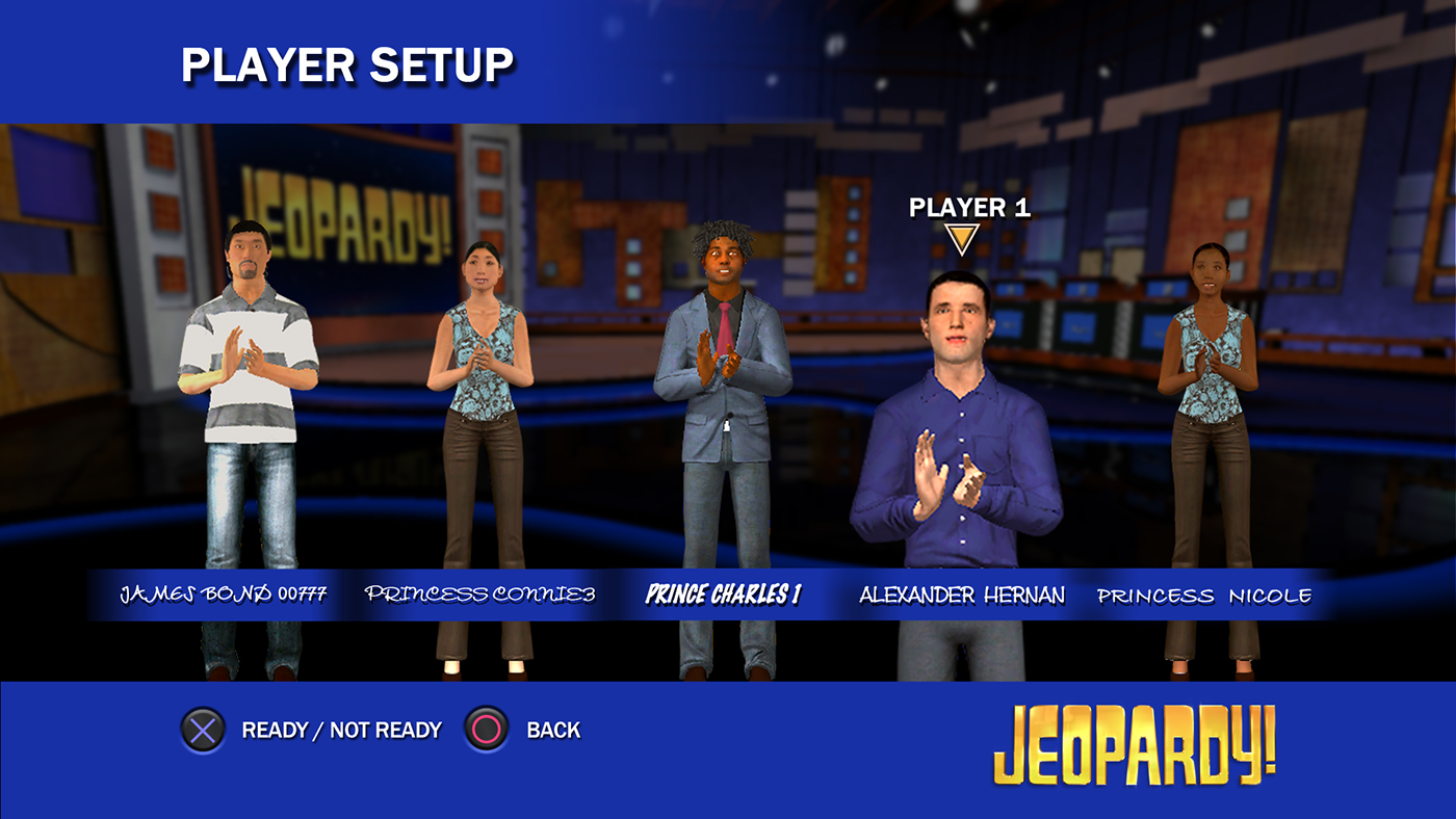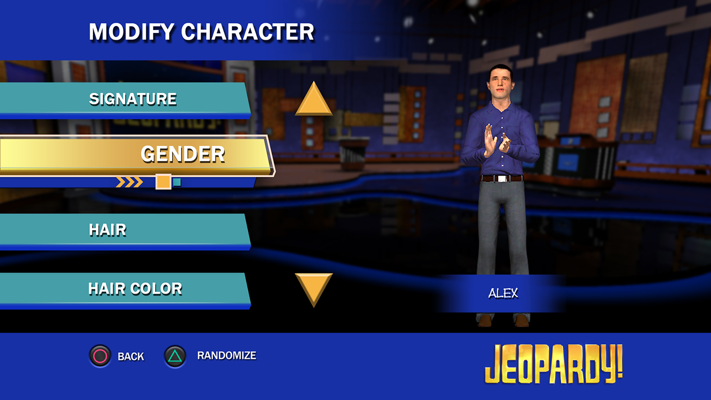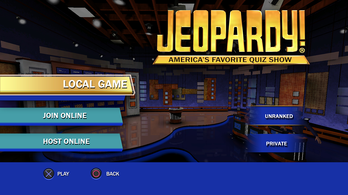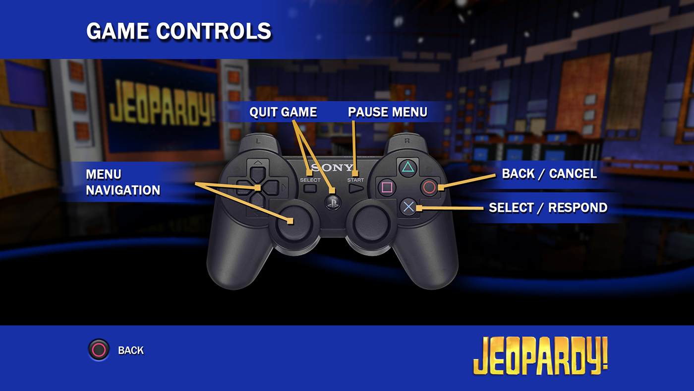 Role: Art Director/ UI/UX Jeopardy! for the Playstation Network, A trivia PSN version of America's Favorite Quiz Show! Launched: September 11, 2008 on Playstation 3