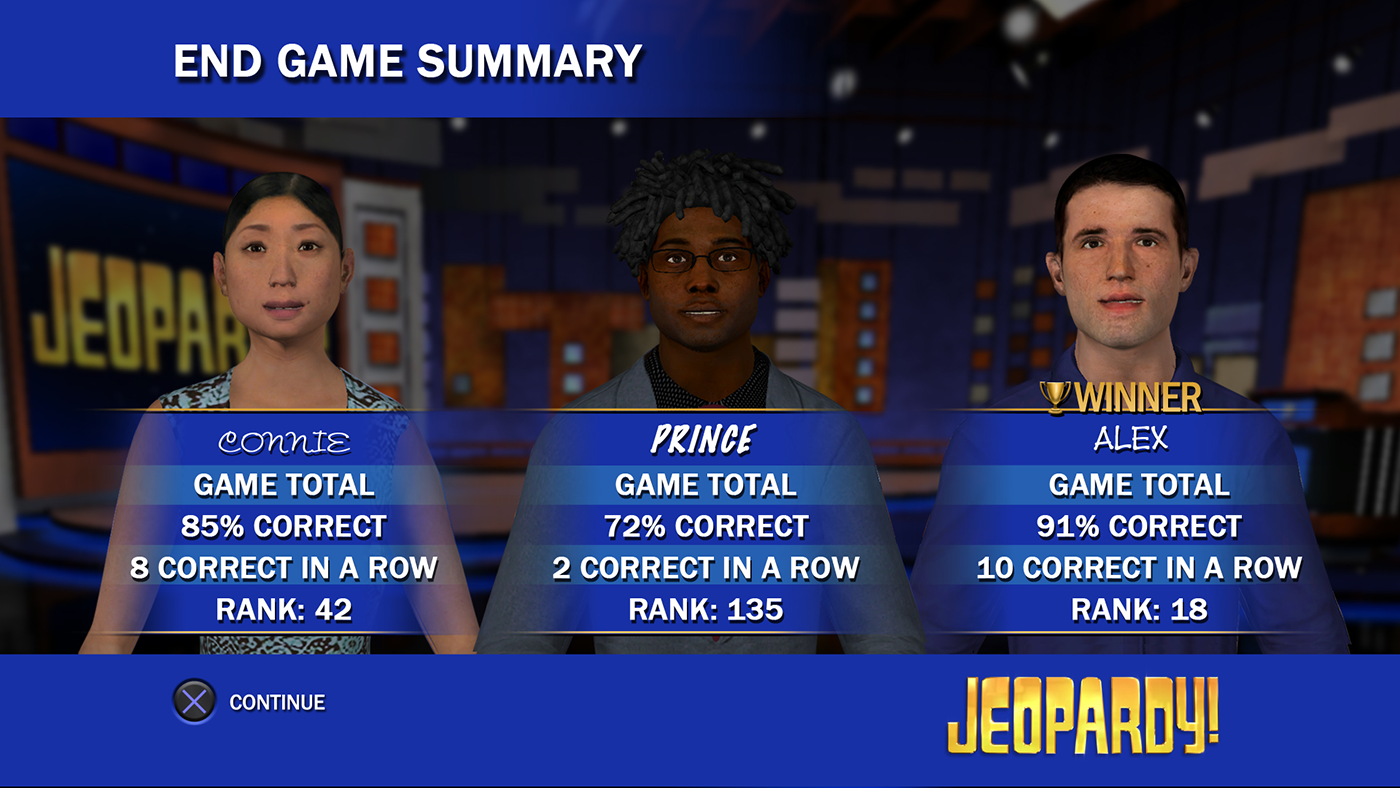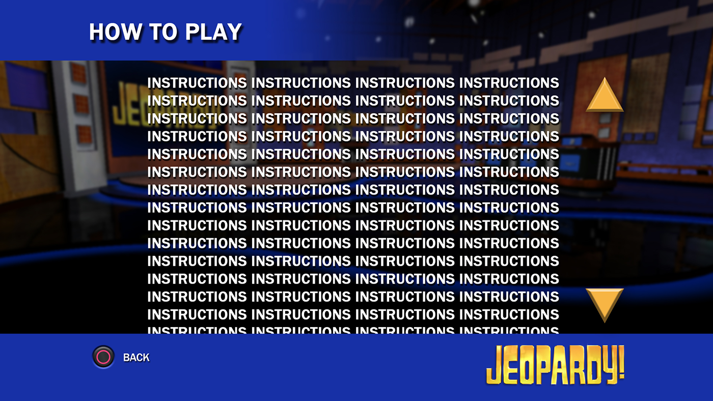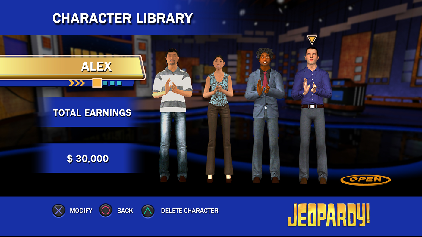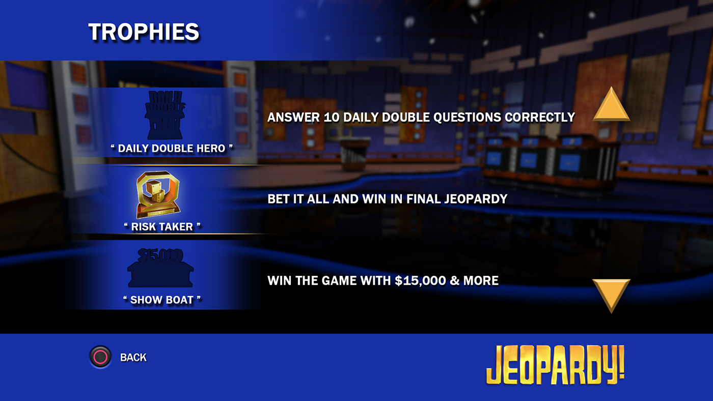 Role: Art Director/ UI/UX Jeopardy! for the Playstation Network, A trivia PSN version of America's Favorite Quiz Show! Launched: September 11, 2008 on Playstation 3