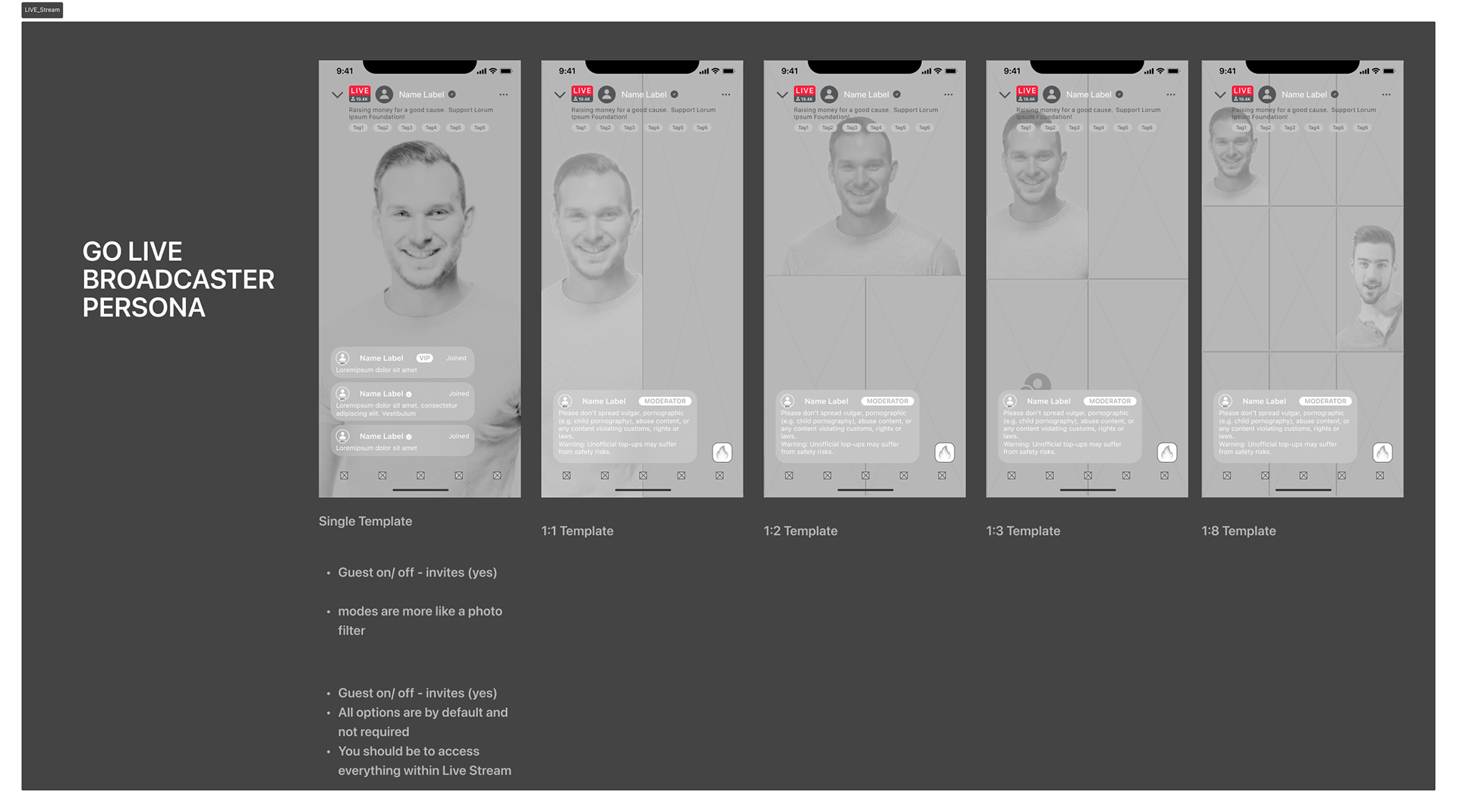 To find a stream, this would require a viewers persona and we decided a lobby or Home Screen of LIVE streams would be a great way to introduce the feature