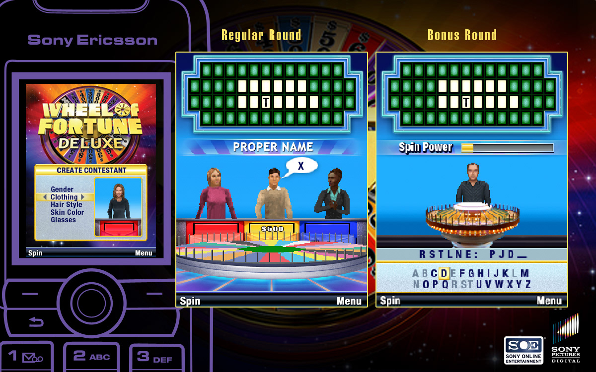 Wheel of Fortune: Deluxe mobile game, launched in 2008. I worked as a production artist and concept artist responsible for UI design, menu screens and background art.