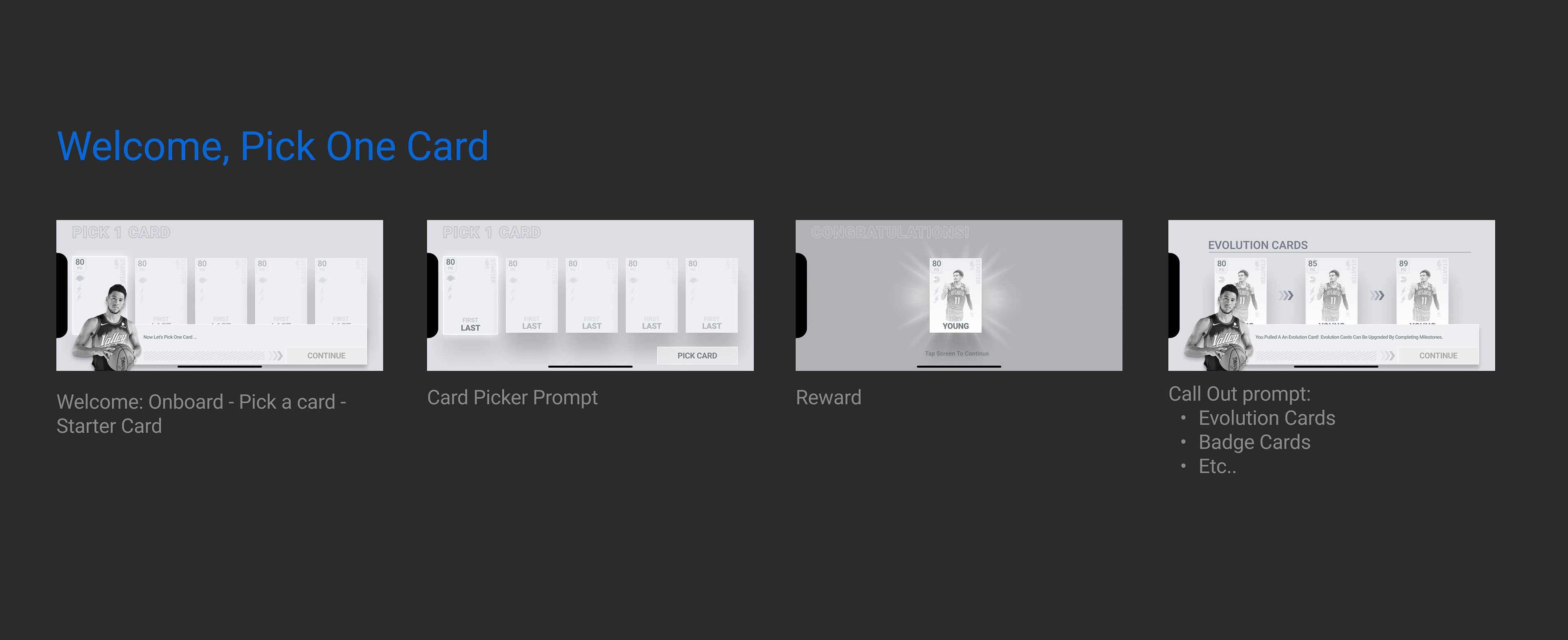 Part of these wireframe user journey for the FTUE onboarding was to incoroprate the console user experience of MyTEAM from a mobile experience that would help address one of the core pillars.