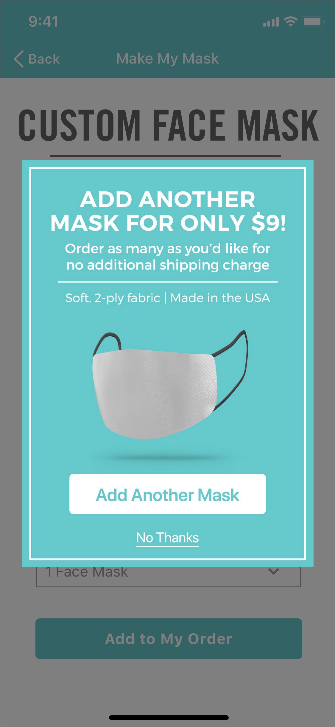 During my time working on this product the Coronavirus (COVID19) hit the world. A pandemic that hit humanity like we have never experienced in our lifetime. It became apparent that face masks seemed like a logical consumer product that should be sold on FreePrints™. The goal was to take our existing consumer products flow and add face mask. The current flow how in the app only allows for one item, then personalize, and then check out.