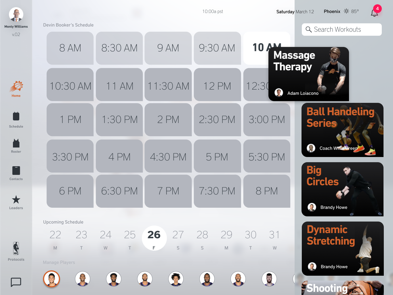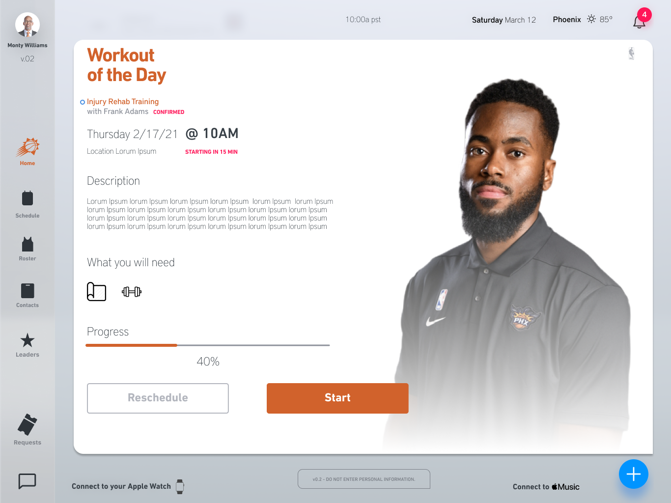 Outcome: As Lead UI/UX Designer for UX Magicians, collaborating with Verizon and the Phoenix Suns, I successfully led a remote development team through three key milestones, delivering a functional prototype concept optimized for both iPad tablets and mobile devices. The prototype showcased a cohesive Sports, Analytics, and Performance app designed to support the daily operations and communication of a professional basketball organization.